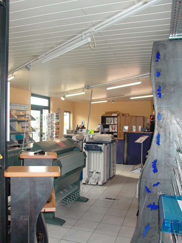 Ob einfache Fotokopien oder Ihren Bauplan, Ihre Konstruktionszeichnung oder Ihre Fotos und selbsterstellten Druckvorlagen. Wir kopieren, vergrößern und scannen in schwarz-weiß oder in Farbe... je nach Wunsch. Von DIN A7 bis zu einer Druckbreite von 1 Meter drucken wir auf unterschiedlichste Papier und Kartonsorten oder auf PVC-Plane, Netze, Selbstklebefolien, Leinwände usw. bis zu einer Druckbreite von 1,52 Meter. Selbstverständlich drucken wir auch Ihre eigenen Dateien, die Sie auf Datenträger anliefern oder per E-Mail zusenden, auf modernsten Druckmaschinen für Sie aus.